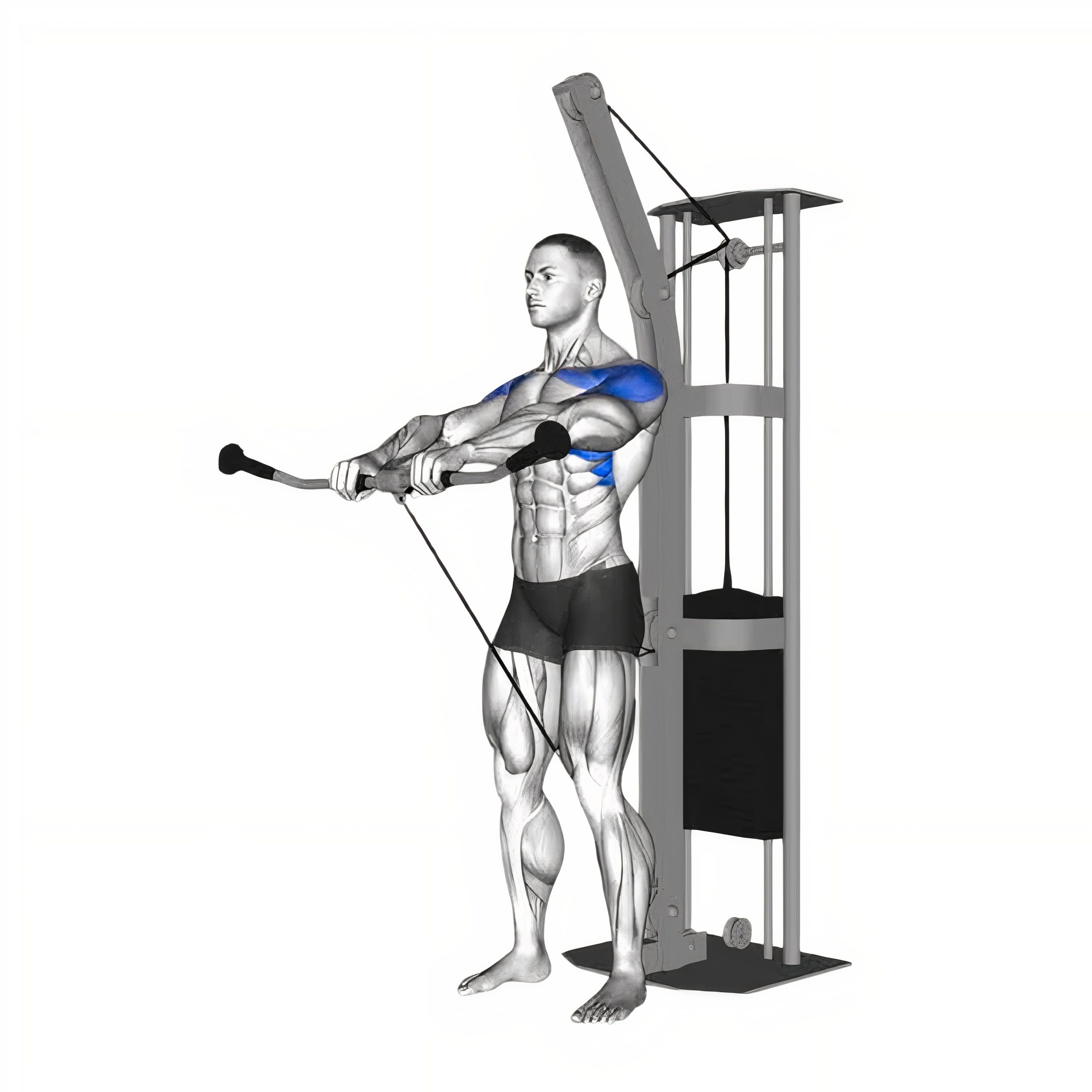 • دسته را با یک یا دو دست گرفته و با انقباض عضلات جلویی شانه، دستها را بهصورت صاف و کنترلشده تا ارتفاع شانه بالا بیاورید.