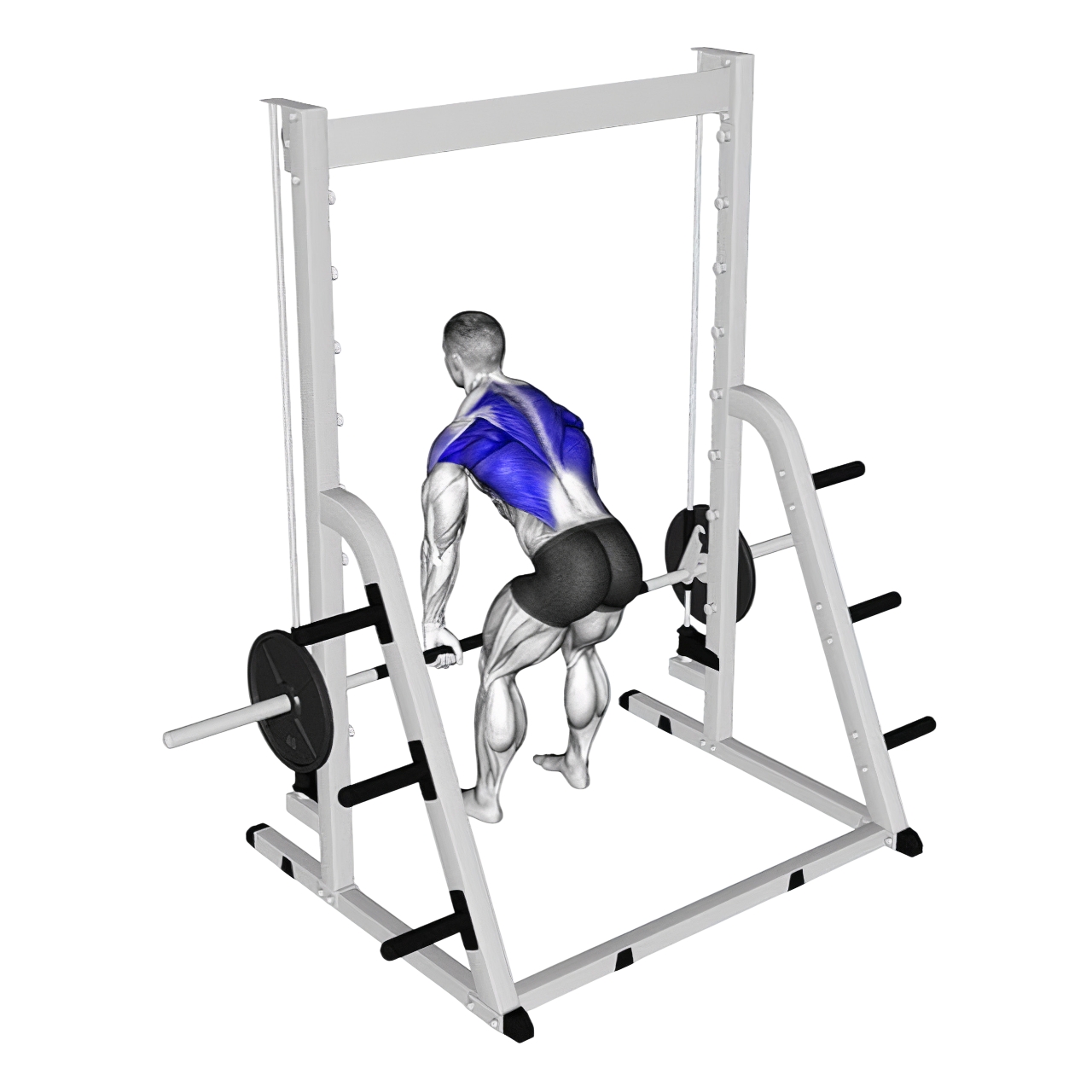 • دستگاه اسمیت باعث ثبات بیشتر و کاهش درگیری عضلات ثانویه میشود، مناسب برای تمرکز بیشتر روی عضلات پشت.
