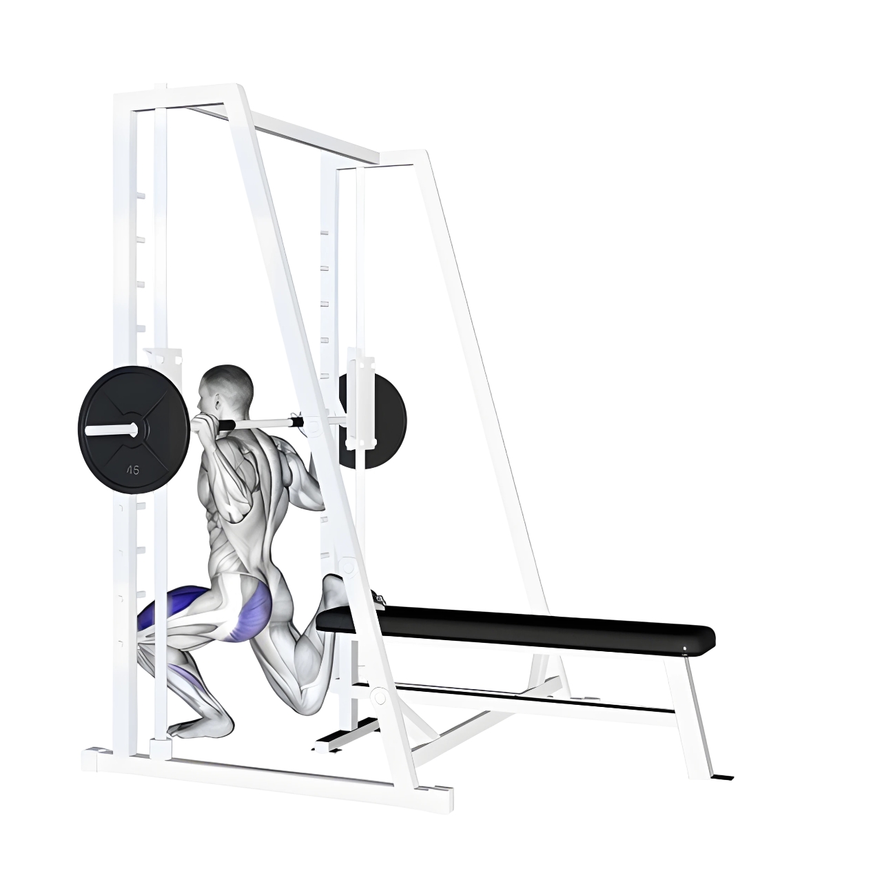 • اسکوات بلغاری با اسمیت برای تقویت عضلات چهارسر ران، همسترینگ و به‌ویژه گلوت (باسن) بسیار مؤثر است، در حالی‌که خطر بی‌تعادلی را نسبت به اجرای آزاد کاهش می‌دهد.