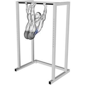 • با درگیری عضلات شکم، پاها را صاف و کنترلشده به سمت بالا حرکت دهید تا پنجهها با میله تماس پیدا کنند.